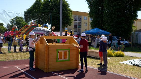 W ramach zadania zostały zakupione: puzzle drewniane, domek edukacyjny do samodzielnego złożenia, 25 szt. lornetek do obserwacji przyrody, modele harwestera i forwardera w skali 1:16, ścianki do namiotów nadleśnictwa z motywem przyrodniczym oraz duży ekran LED, który znajduje się na ścianie w sali nadleśnictwa. Urządzenia i sprzęty te są wykorzystywane podczas zajęć edukacyjnych, zarówno z dziećmi jak dorosłymi. Ekran LED naścienny jest idealny w zastosowaniach szkoleniowych i dydaktycznych. Technologia LED gwarantuje wysoką jasność, co zapewnia odpowiednią wyrazistość ekranu w bardzo naświetlonych przestrzeniach, co jest bardzo ważne także dla osób z gorszym wzrokiem. Ekran pozwala na uzyskanie trójwymiarowego obrazu, co jest niezwykle istotnym elementem zajęć z dziećmi i zaspokajaniem ich ciekawości świata. Przekazane obrazy są wysokiej jakości, wiernie oddają jakość i barwy, co jest atutem ekranu podczas pracy z dziećmi i dorosłymi. Wiele zajęć, choćby z pokazania pozyskania drewna, surowca ekologicznego i odnawialnego, czy też spotkań ze zwierzętami może być niebezpiecznych i niemożliwym jest pokazania ich z bliska grupie dzieci. Na ekranie zobaczą to idealnie i bezpiecznie.