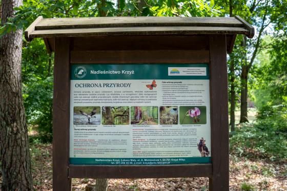 Na terenie Leśnictwa Radzyń w Kuźnicy Żelichowskiej oraz Leśnictwa Dębina znajdują się dwie wiaty turystyczno- edukacyjne wraz z tablicami edukacyjnymi. Z pierwszego miejsca rozciąga się wspaniała panorama na jezioro Radzyń Duży, a druga wiata znajduje się nad rzeką Drawą. Piękne urokliwe miejsca są perełkami lasów Nadleśnictwa Krzyż.
