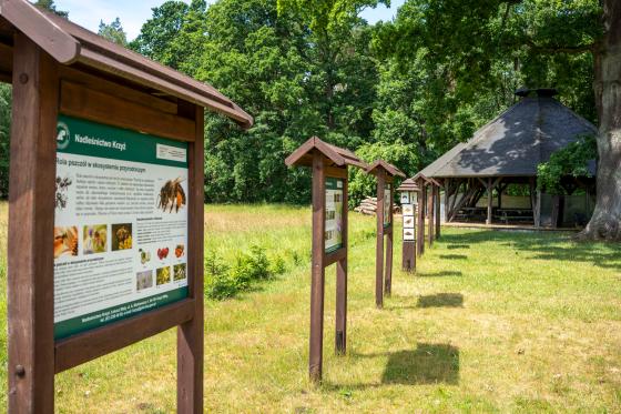 Na ścieżkach znajdują się tablice edukacyjne, światowidy, dendrofon, gry i labirynty interaktywne. Każdy miłośnik przyrody znajdzie tu coś ciekawego.